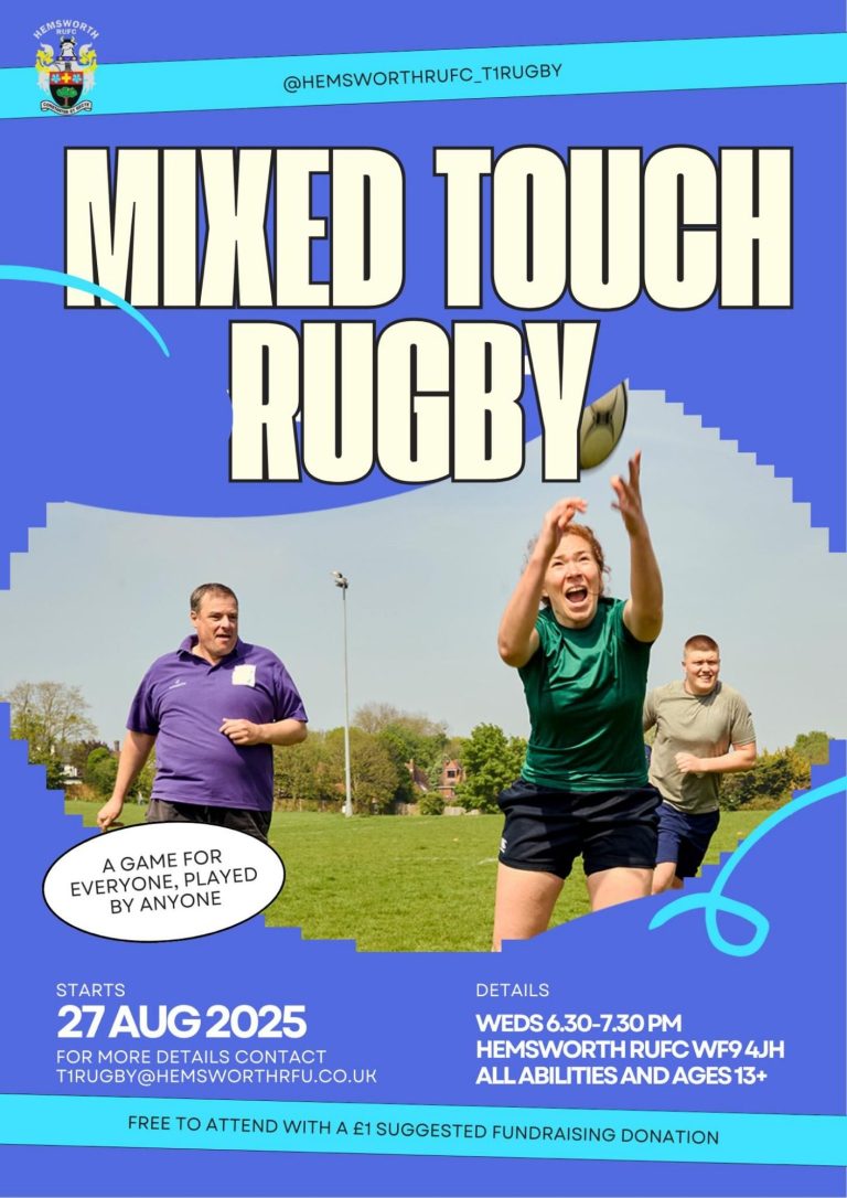 Hemsworth RUFC are recruiting for senior players 18+ both male and female of all abilities for the remainder of this season, also we are looking for 16-18 yr old boys to form a “colts” team again all abilities welcome.